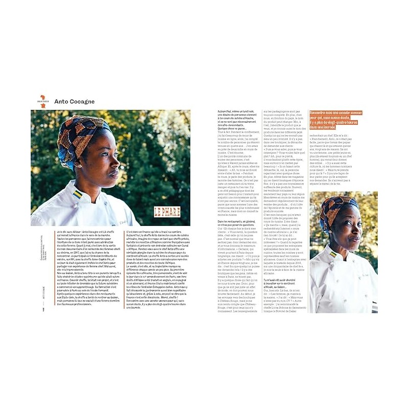 Elle s'interroge pour savoir comment les chefs Afropéens renouvellent-ils la cuisine en France ? Quel rapport entretient-on avec ses racines, ses traditions ? Qu’est-ce qui nous lie d’un continent à l’autre ? Quelle force nous pousse à créer ? Sans oublier des reportages sur l’essor de la soul food, la bière, le vin, les poivres, le miel sauvage du Mali, la cuisine éthiopienne, le riz...