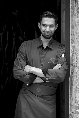 Avec un petit côté Dr Jeykell et Mr Hyde, Jérémy Galvan est toujours tiraillé entre territoire et innovation, la dimension locale et la technologie. « Je me sens enfin libre et en accord avec moi-même », affirme haut et fort celui qui a posé ses bagages au cœur du vieux Lyon. Sa famille était elle-même entre deux traditions : paysanne et pied-noire espagnole. En 5ème Jérémy se fait plus remarquer par ses bêtises que par ses résultats scolaires. Il se retrouve en maison familiale rurale et rencontre, pour la première fois, des personnes qui se montrent emphatiques et bienveillantes et pointent l’impact de son attitude sur les autres. « J’ai vu les choses différemment et les stages que j’ai effectués m’ont fait évoluer ». Un ami avait passé quelques semaines en cuisine et l’entraina dans son sillage. En 1998 le jeune Jérémy commence un CAP, mais déteste ses débuts qu’il trouve très difficiles. Il rencontre alors Bernard Antelme qui s’était formé auprès de Bocuse. « Six mois plus tard, l’aspect négatif du métier s’est effacé pour laisser la place au plaisir qu’on pouvait procurer aux autres et à soi-même et je n’ai jamais plus vu les contraintes ».