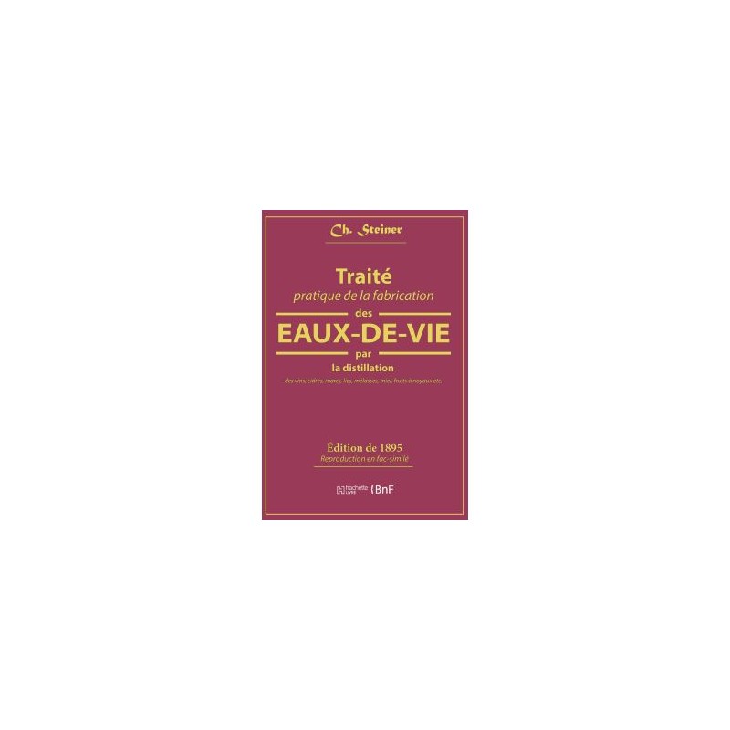 La réimpression à l'identique par la BnF du Traité pratique de la fabrication des eaux-de-vie par la distillation des vins, cidres, marcs, lies, mélasses, miel, fruits à noyaux, etc. par Charles Steiner, où ce dernier explique dans les détails toutes typologies de distillation tout en rappelant également l'évolution et l'histoire de cette pratique qui existe depuis des siècles.