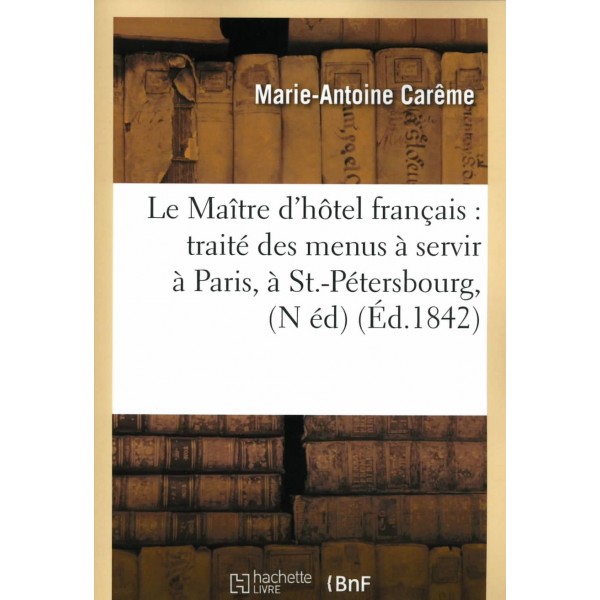 Publié en 1842, cette édition du Maître d'hôtel français : traité des menus à servir à Paris, à St Petersbourg, à Londres et à Vienne est réimprimé à l'identique par la BNF-Gallica.