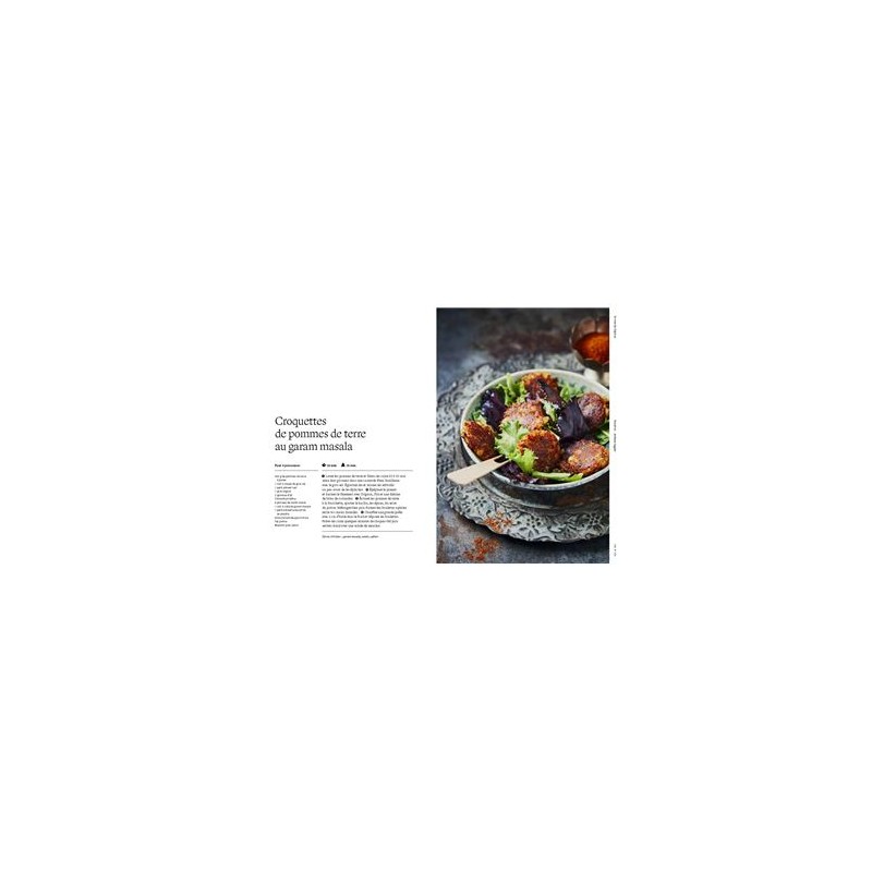 Et enfin 100 recettes savoureuses, classées en entrées et accompagnements (bao poire-bleu, taboulé, galettes aux yaourt et carottes rôties), assiettes veggies (friands au poivron, riz aux épices et fruits secs), poissons (boulettes aux sardines, mulet farci au potimarron), viandes (soupes à l'agneau, brochettes de poulet au garam masala) et desserts (pain d'épice à l'orange et aux fruits secs, gâteau en feuilles de bananier).