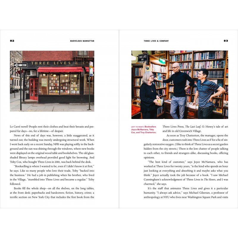Un très joli ouvrage, en anglais, pour découvrir les petites et grandes histoires des restaurants, bars et magasins qui rendent Manhattan si spécial. Prendre un petit déjeuner au Fanelli's, faire un repas d'exception au Bernardin, se perdre chez Russ & Daughter ou encore au Apollo Theater de Harlem sont autant de chapitres dévoilant une facette parfois méconnue de la ville -il y en a presque 30 au total-.