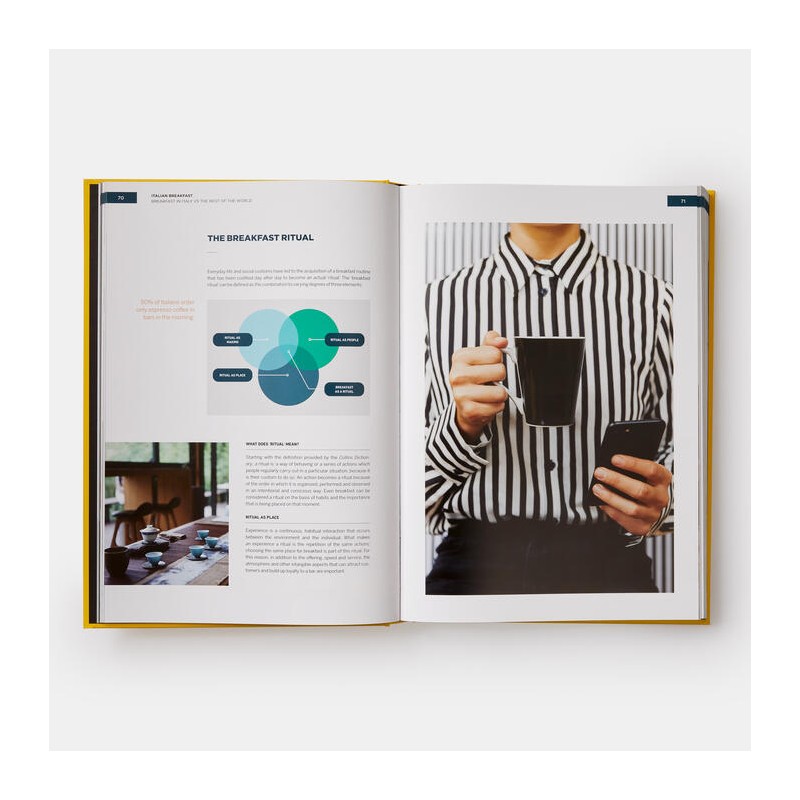 Après avoir donné la définition (plus complexe qu'il n'y parait) de ce petit déjeuner typique italien, l'ouvrage la compare au reste du monde avant d'en proposer une classification. Vous trouverez ensuite un chapitre sur sa place dans la société puis dans le monde de l'entreprise. Vous aurez également un chapitre sur le petit déjeuner à l'extérieur et sur les livraisons. Enfin l'ouvrage termine avec l'histoire du petit déjeuner du paléolithique à nos jours.