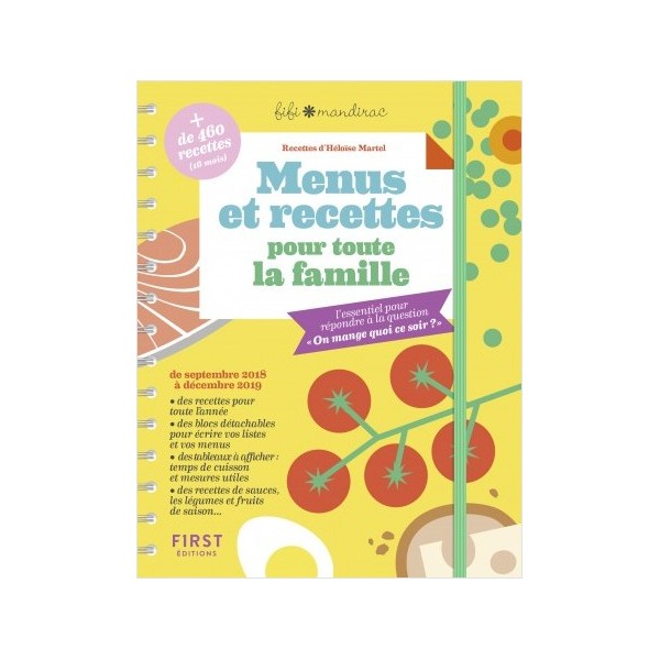 Vous trouverez à la fin, des pages avec un tableau des équivalences un tableau des cuissons, des post-it pour noter vos menus à la semaine et une liste de courses détachable.