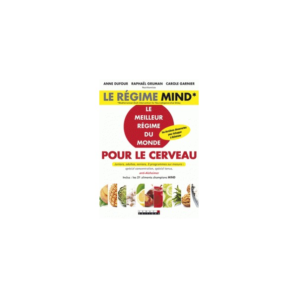 Que l'alimentation joue un rôle primordial dans la santé et la prévention des maladies cela était admis, qu'elle puisse également avoir un rôle à jouer sur le cerveau et la mémoire c'est la dernière découverte d'une équipe de chercheurs américains qui grâce à la combinaison du régime méditerranéen et du régime DASH (les deux étant reconnus pour leurs vertus) permettrait de réduire de 53 % les risques de maladie neurodégénérative notamment Alzheimer. L'idée est simple : une activité physique régulière associée à une alimentation à base de légumes et de superaliments tels que les épinards, l'artichaut, l'asperge ou encore l'incontournable avocat. Dites donc adieu à tous les plaisirs gras salés ou sucrés comme le fromage, la charcuterie, certains morceaux de viande ou les sucreries et douceurs. Pas de panique, pour s'y retrouver le livre propose un guide de 550 aliments et leur place dans le régime.